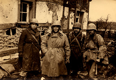 This picture shows his close associate, the Battalion Chief Doctor, and his most important aids. The inscription on the back of the photo reads, "We all look like this after 30 or 40 days in the field."