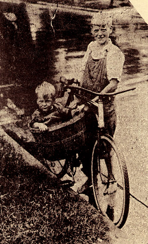 By the time this photo was taken, Axel had started giving Carl rides on the handlebars of his own bicycle. The most important of these was to the West Branch Library. Carl shared his father's avid interest in reading from an early age, and the two went to the library together at least once a week.