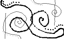 Simulations of what the images look like from space after being drawn on North America by the net.art Sketch applet. |