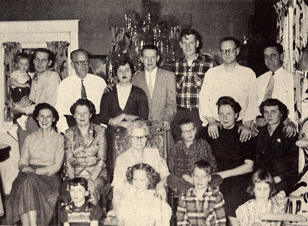 Top row, left to right: Jeff, Harold, Ed, Elizabeth, Arthur, Edwin, Carl, Wally;Second row: Marge, Hildur, Anna, Karl, Bernice, Ann; Bottom row: Kris, Margaret, Jim, Kathy.