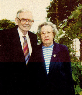 By the time of the couple's 50th wedding aniversary in 1996, their health had declined and their traveling days were long over. This didn't mean that Carl had not had plenty to do in the mid 1990s. For the first time in his life, he had enough time to read as much as he wanted. He tended his backyard garden and did light wood working in his basement shop. Expanded television coverage of politics, particularly broadcasts of sessions of congress, gave him the opportunity to watch at least one branch of government function in detail. He kept a copy of the U.S. Constitution tucked in his chair. Although he could recite it verbatim, he also kept a copy of the Bill of Rights on the table next to him. Carl and Bernice celebrating their 50th Wedding Aniversary