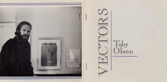 Vectors, by Toby Olson. 7" x 7"; 32 pp; side stitched with spine. Printed after hours at Wisconsin Speed Press, 1972. Click here to go to an essay on Toby Olson and his books