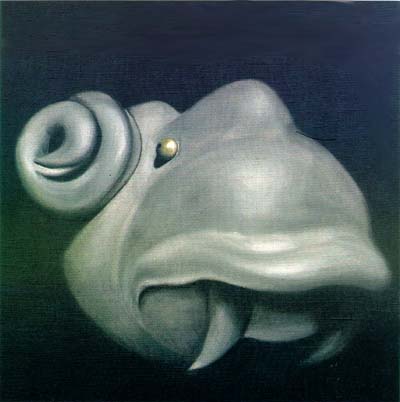 The animal is very large but has no joints. It cannot bend or go to sleep. When the female is ready to give birth she wades into a lake until the water reaches her udder. So does she bear her young and raise it, staying in the water until it can walk on its own legs and come out of the water with its parents. The animal is also quite nearsighted, almost blind. Occasionally it has fed upon its own legs without realizing it.
